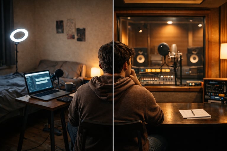 Tu crées dans ta chambre mais tu sens que ça peut aller plus loin ? Studio ou home studio : repères simples pour savoir quand passer le cap.